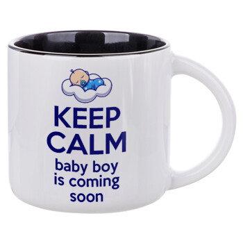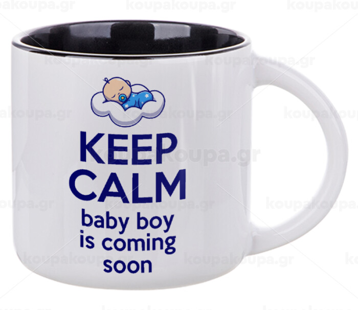 KEEP CALM baby boy is coming soon!!!, Κούπα κεραμική 400ml Λευκή/Μαύρη