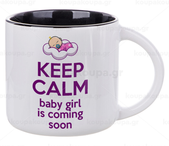 KEEP CALM baby girl is coming soon!!!, Κούπα κεραμική 400ml Λευκή/Μαύρη