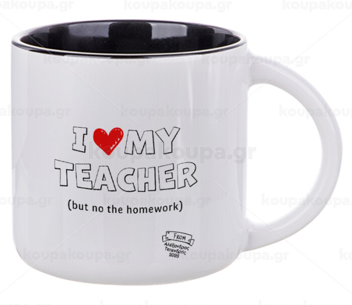 i love my teacher but no the homework outline, Κούπα κεραμική 400ml Λευκή/Μαύρη