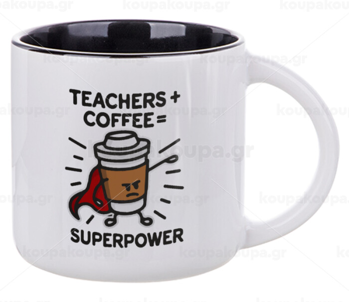 Teacher Coffee Super Power, Κούπα κεραμική 400ml Λευκή/Μαύρη