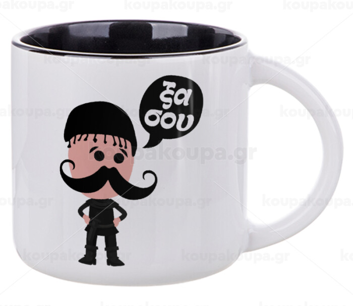 Κρητικός "Ξα σου", Κούπα κεραμική 400ml Λευκή/Μαύρη