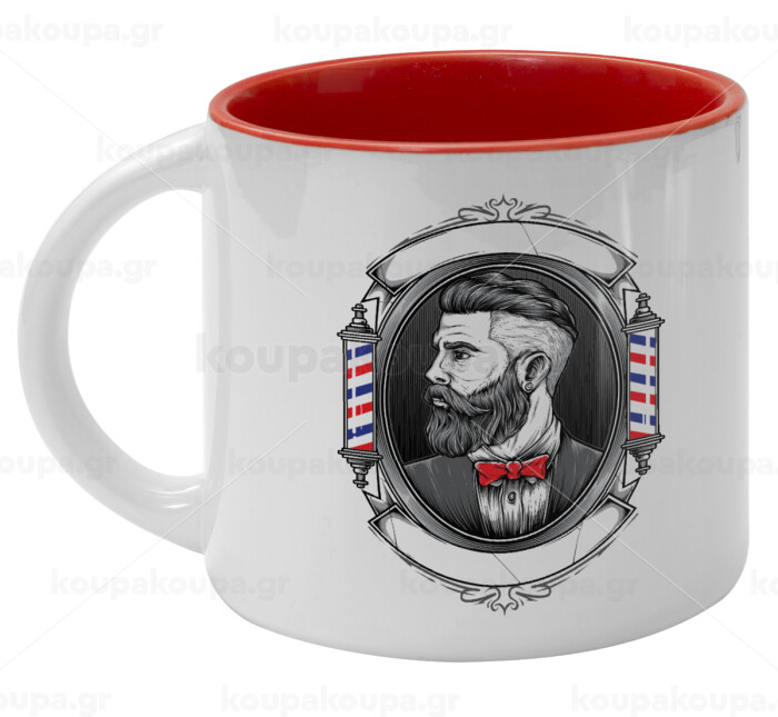 Barber shop, Κούπα κεραμική 400ml Λευκή/Κόκκινη