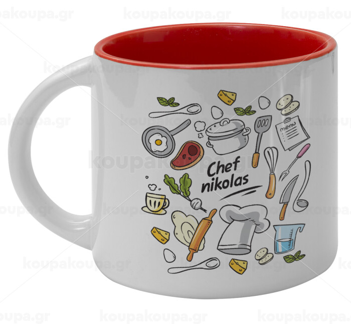 Chef με όνομα, Κούπα κεραμική 400ml Λευκή/Κόκκινη