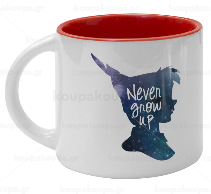 Never Grow UP, Κούπα κεραμική 400ml Λευκή/Κόκκινη