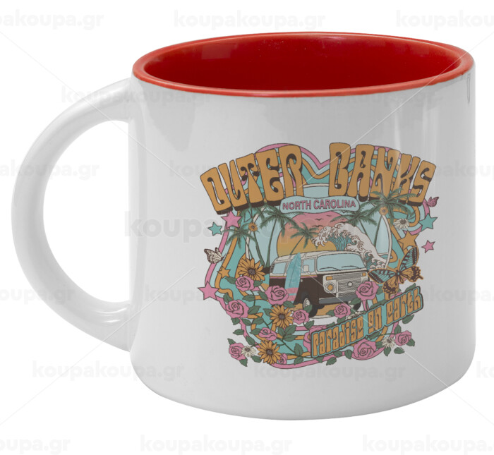 Outerbanks paradise on earth, Κούπα κεραμική 400ml Λευκή/Κόκκινη