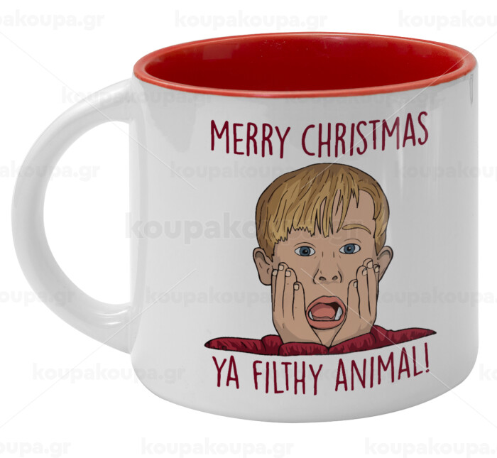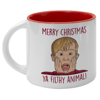 home alone, Merry Christmas ya filthy animal, Κούπα κεραμική 400ml Λευκή/Κόκκινη