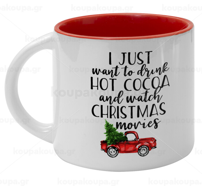 I just want to drink hot cocoa and watch christmas movies pickup car, Κούπα κεραμική 400ml Λευκή/Κόκκινη