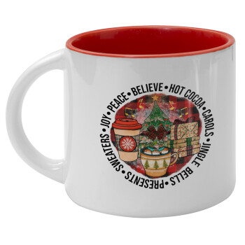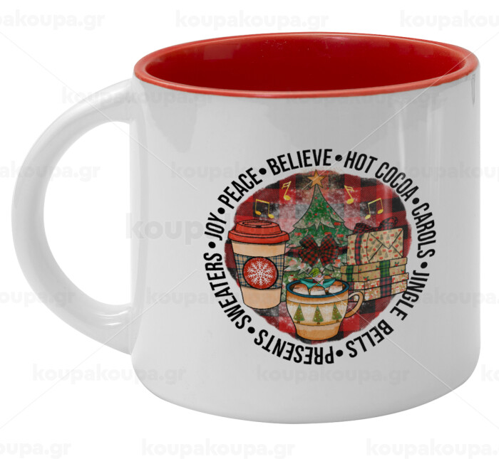 Joy, Peace, Believe, Hot Cocoa, Carols, Κούπα κεραμική 400ml Λευκή/Κόκκινη