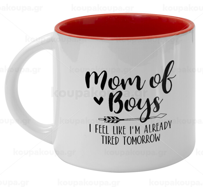 Mom of boys i feel like im already tired tomorrow, Κούπα κεραμική 400ml Λευκή/Κόκκινη