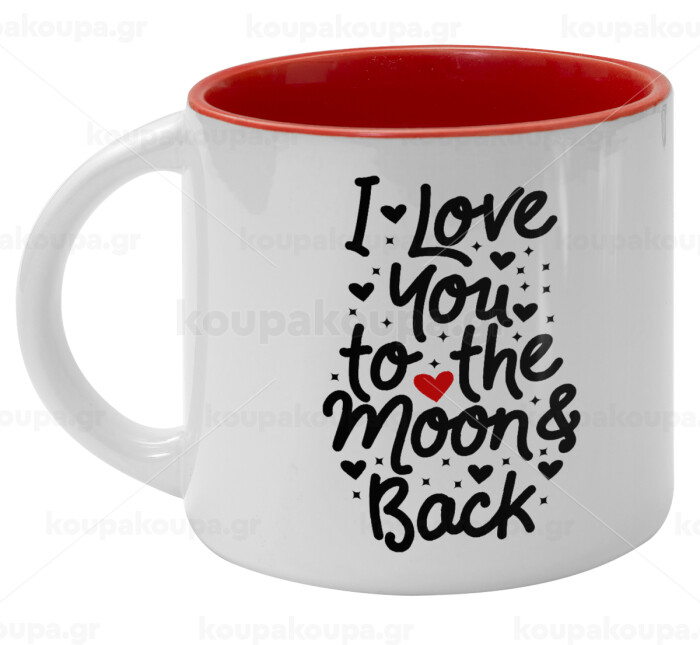 I love you to the moon and back with hearts, Κούπα κεραμική 400ml Λευκή/Κόκκινη