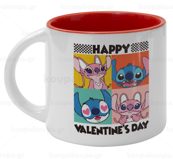 Lilo & Stitch Happy valentines day, Κούπα κεραμική 400ml Λευκή/Κόκκινη