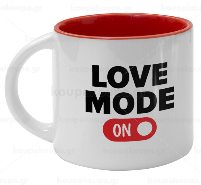 LOVE MODE ON, Κούπα κεραμική 400ml Λευκή/Κόκκινη