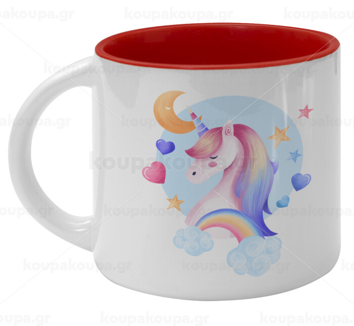Μονόκερος, Κούπα κεραμική 400ml Λευκή/Κόκκινη