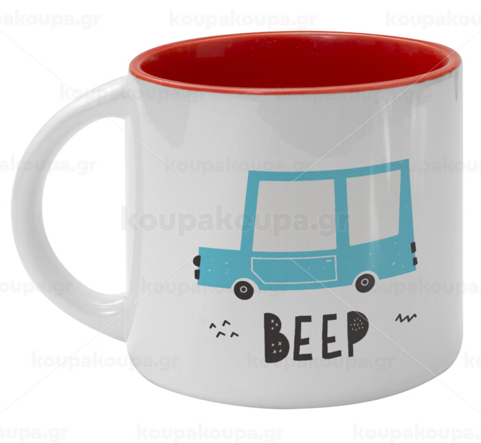 Car BEEP..., Κούπα κεραμική 400ml Λευκή/Κόκκινη