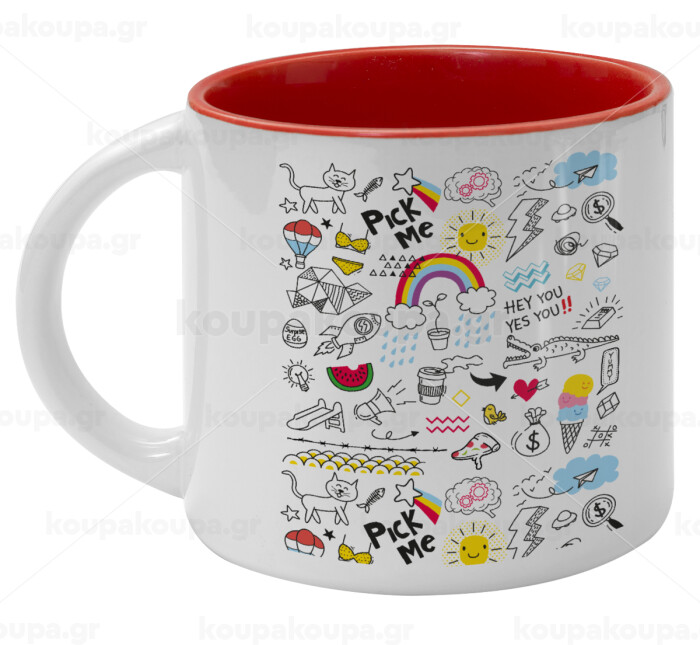 Doodle kids, Κούπα κεραμική 400ml Λευκή/Κόκκινη