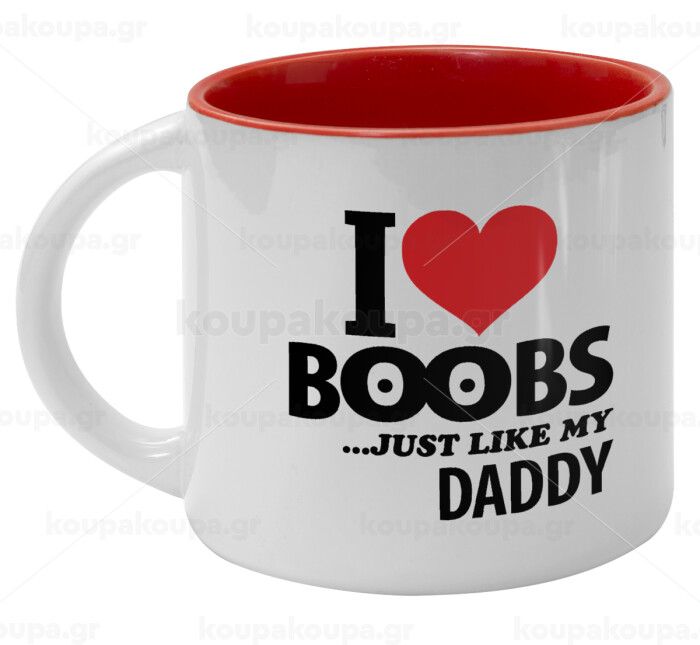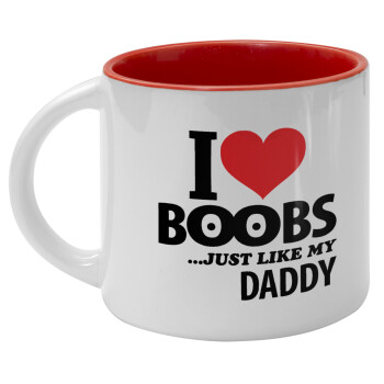 I Love boobs ...just like my daddy, Κούπα κεραμική 400ml Λευκή/Κόκκινη