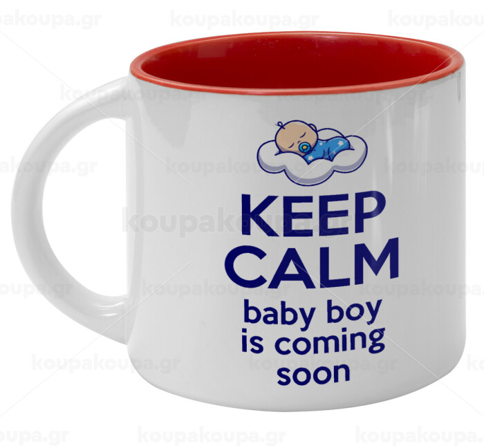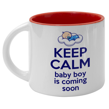 KEEP CALM baby boy is coming soon!!!, Κούπα κεραμική 400ml Λευκή/Κόκκινη