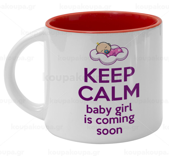 KEEP CALM baby girl is coming soon!!!, Κούπα κεραμική 400ml Λευκή/Κόκκινη