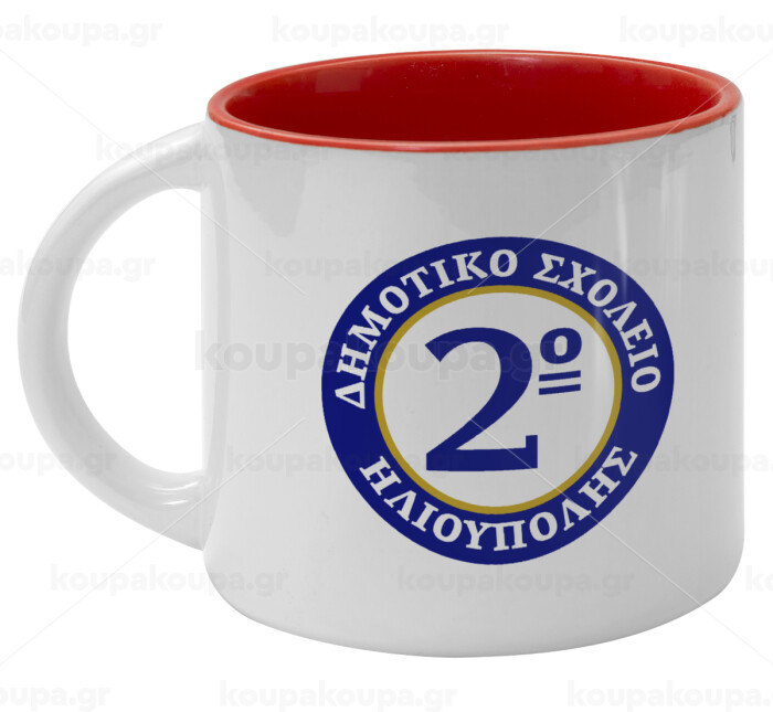 Έμβλημα Σχολικό μπλε/χρυσό, Κούπα κεραμική 400ml Λευκή/Κόκκινη