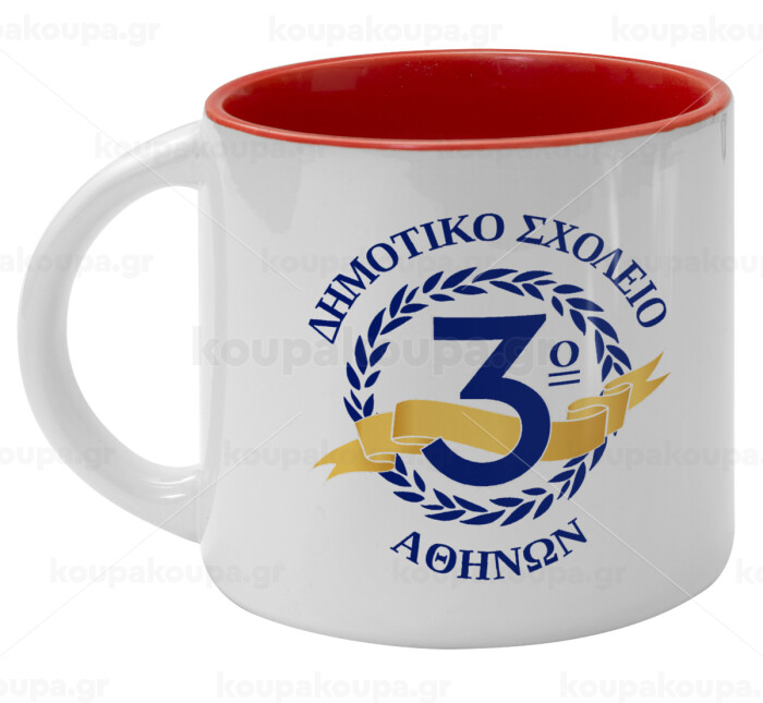 Έμβλημα Σχολικό μπλε, Κούπα κεραμική 400ml Λευκή/Κόκκινη