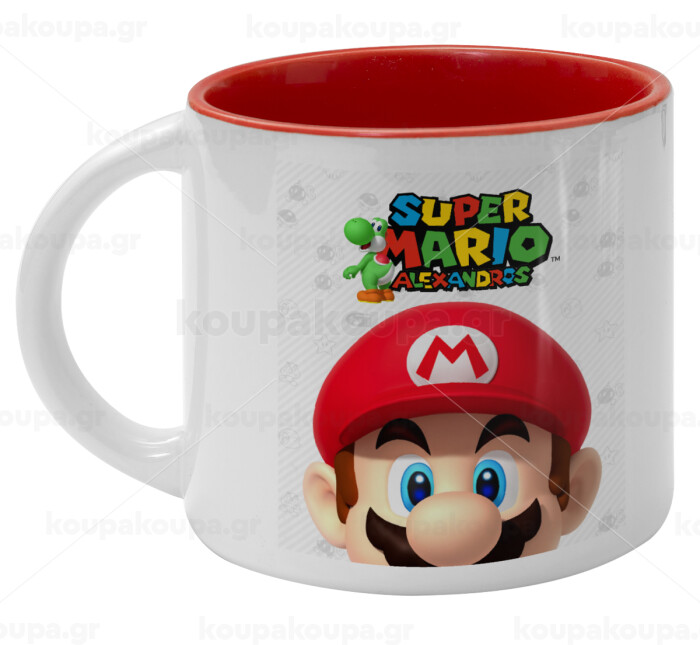 Super mario head, Κούπα κεραμική 400ml Λευκή/Κόκκινη