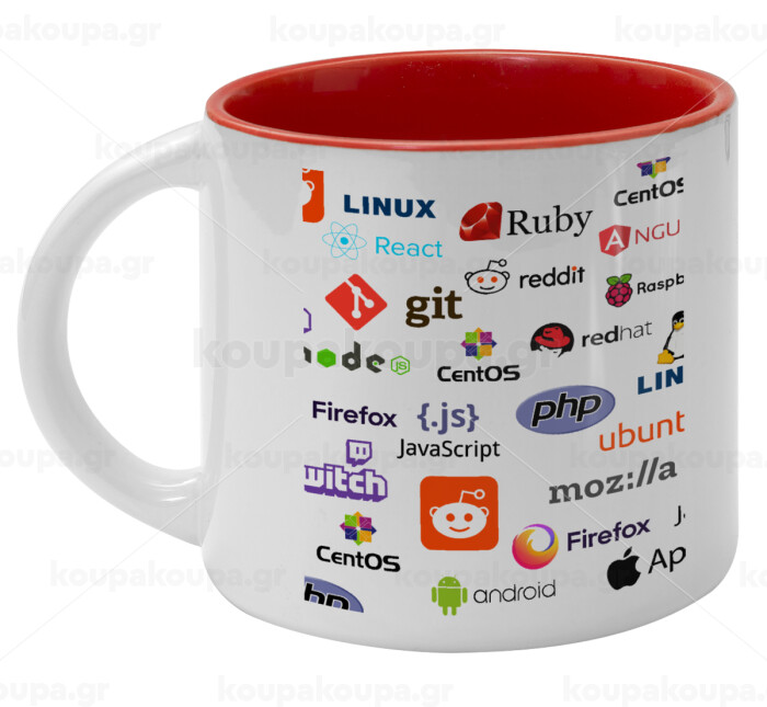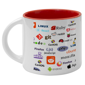 Tech logos, Κούπα κεραμική 400ml Λευκή/Κόκκινη