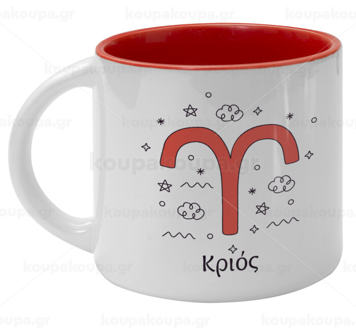 Ζώδια Κριός, Κούπα κεραμική 400ml Λευκή/Κόκκινη