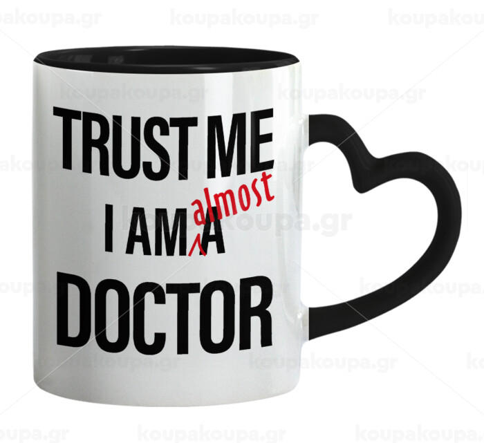 Trust me, i am (almost) Doctor, Κούπα καρδιά χερούλι μαύρη, κεραμική, 330ml