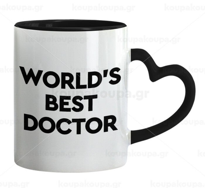 World's Best Doctor, Κούπα καρδιά χερούλι μαύρη, κεραμική, 330ml