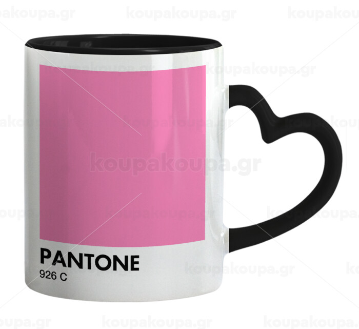 PANTONE Pink C, Κούπα καρδιά χερούλι μαύρη, κεραμική, 330ml