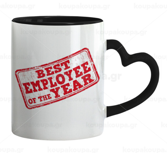 Best employee of the year, Κούπα καρδιά χερούλι μαύρη, κεραμική, 330ml