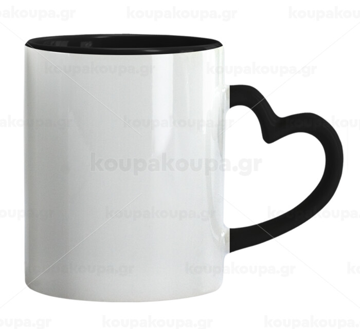 BLANK, Κούπα καρδιά χερούλι μαύρη, κεραμική, 330ml