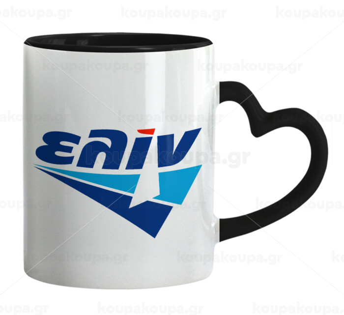 Πρατήριο καυσίμων ΕΛΙΝ, Κούπα καρδιά χερούλι μαύρη, κεραμική, 330ml