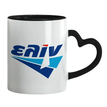 Πρατήριο καυσίμων ΕΛΙΝ, Κούπα καρδιά χερούλι μαύρη, κεραμική, 330ml
