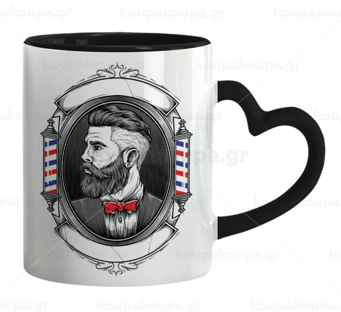 Barber shop, Κούπα καρδιά χερούλι μαύρη, κεραμική, 330ml