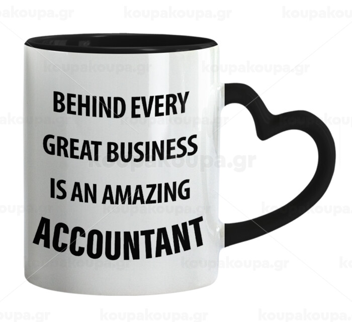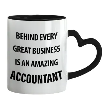Behind every great business, Κούπα καρδιά χερούλι μαύρη, κεραμική, 330ml