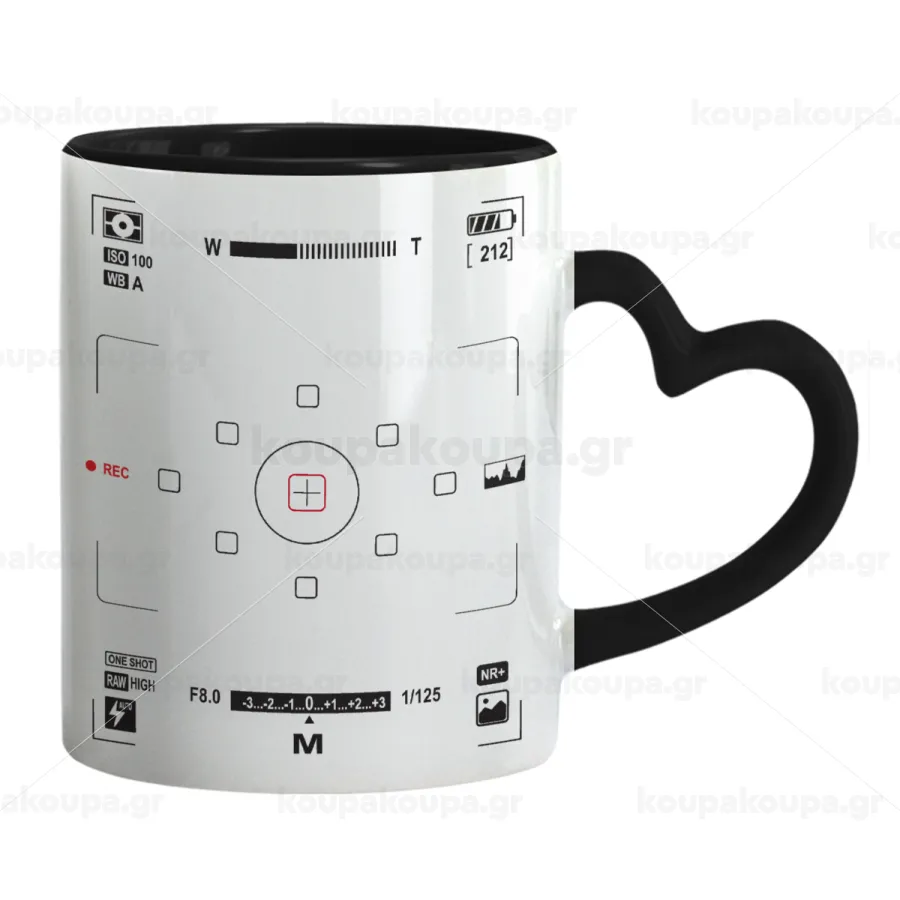 Camera viewfinder, Κούπα καρδιά χερούλι μαύρη, κεραμική, 330ml