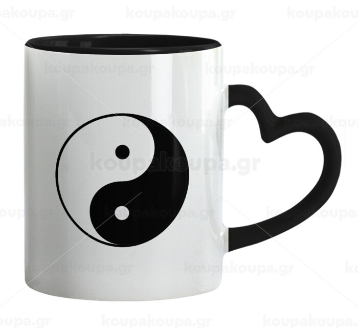 Yin Yang, Κούπα καρδιά χερούλι μαύρη, κεραμική, 330ml