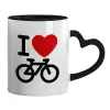 I love Bike, Κούπα καρδιά χερούλι μαύρη, κεραμική, 330ml