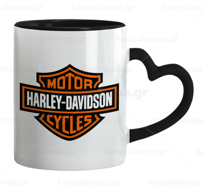 Motor Harley Davidson, Κούπα καρδιά χερούλι μαύρη, κεραμική, 330ml