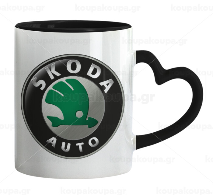 SKODA, Κούπα καρδιά χερούλι μαύρη, κεραμική, 330ml