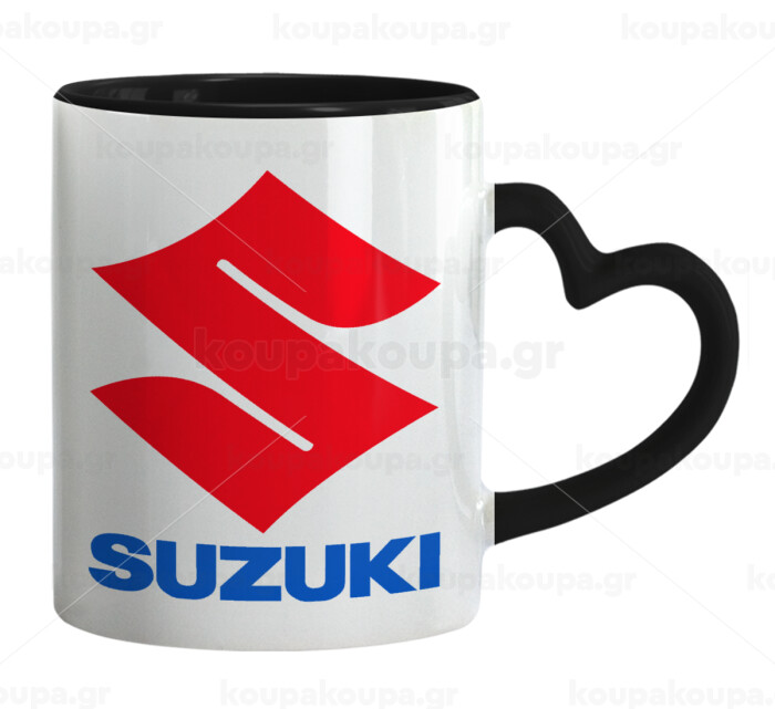 SUZUKI, Κούπα καρδιά χερούλι μαύρη, κεραμική, 330ml