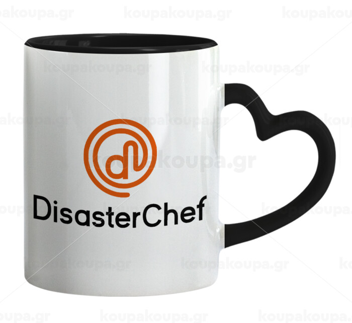 Disaster Chef, Κούπα καρδιά χερούλι μαύρη, κεραμική, 330ml