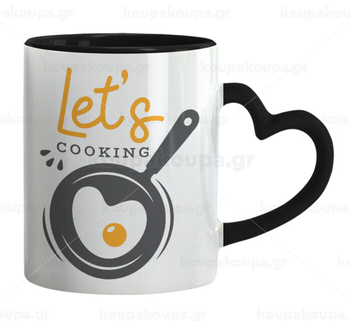 Let's cooking, Κούπα καρδιά χερούλι μαύρη, κεραμική, 330ml