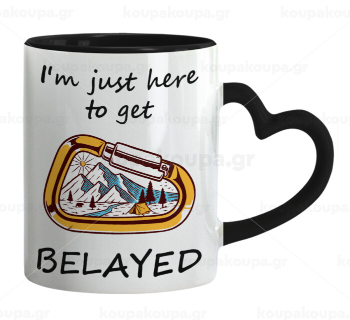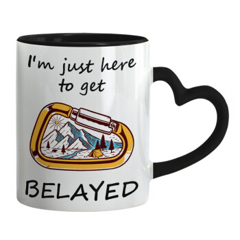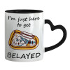 I'm just here to get Belayed, Κούπα καρδιά χερούλι μαύρη, κεραμική, 330ml