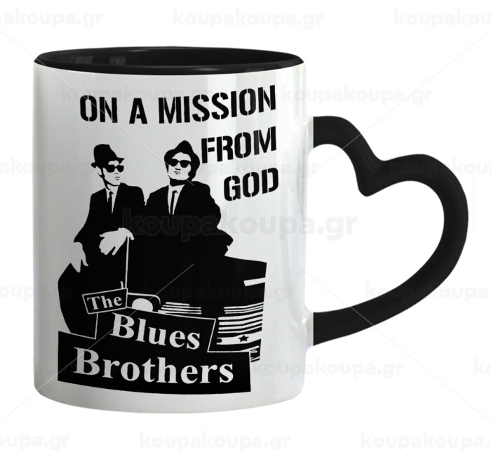 Blues brothers on a mission from God, Κούπα καρδιά χερούλι μαύρη, κεραμική, 330ml