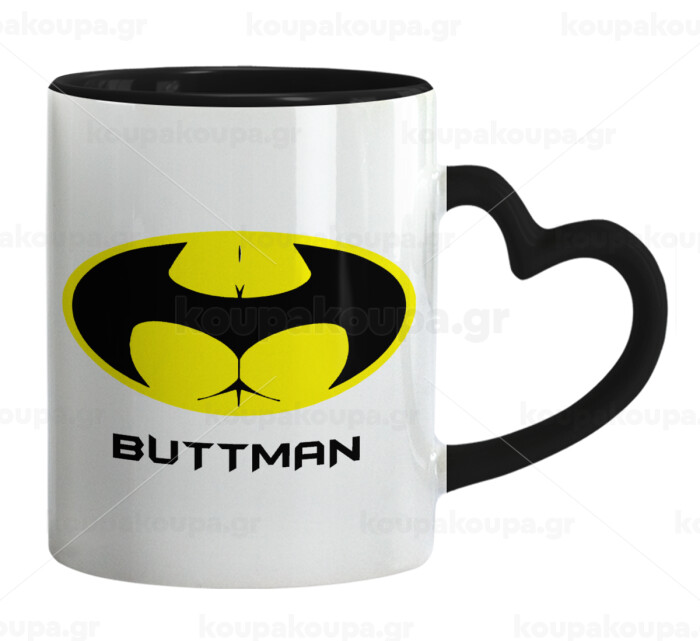 Buttman, Κούπα καρδιά χερούλι μαύρη, κεραμική, 330ml