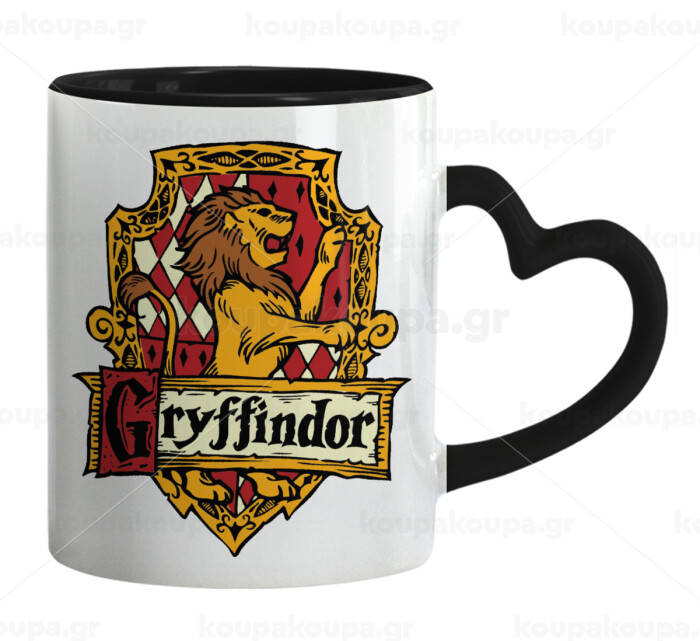 Gryffindor, Harry potter, Κούπα καρδιά χερούλι μαύρη, κεραμική, 330ml