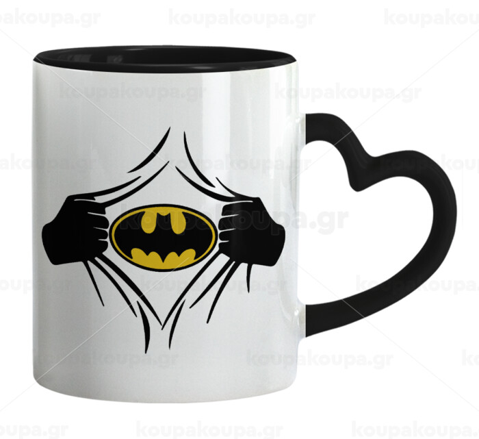 Hero batman, Κούπα καρδιά χερούλι μαύρη, κεραμική, 330ml