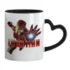 Ironman, Κούπα καρδιά χερούλι μαύρη, κεραμική, 330ml